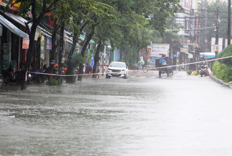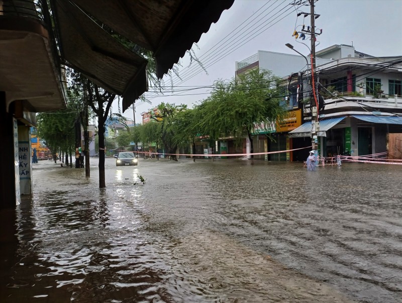 | Nhiều nơi tại thành phố Tam Kỳ ngập sâu, lượng lực chức năng giăng dây cảnh báo |