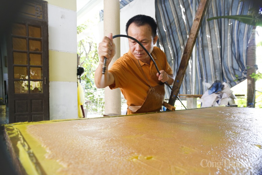 Tất cả các công đoạn đều được làm thủ công, không dùng đến hóa chất để giữ nguyên vẹn màu sắc, tạo nên đặc trưng của giấy dừa. |