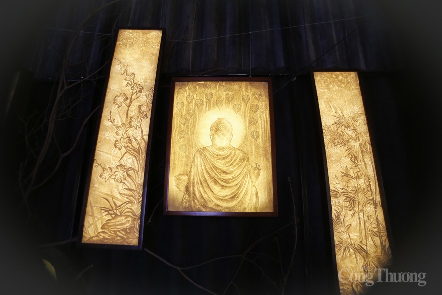 “Năm 2015, tôi thấy mình nên về quê làm một điều gì đó với những thứ có sẵn ở quê nhà. Nhìn thấy dừa nước rất nhiều ở Hội An, cộng muốn làm cộng việc góp phần vào hệ sinh thái chung nơi đây, tôi cùng với 2 cộng sự nữa đã tạo ra những bức tranh với nguồn gốc từ bẹ dừa”, anh Thọ chia sẻ. |