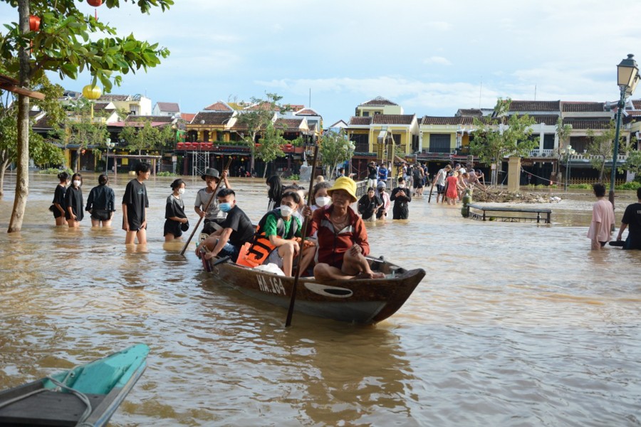 Tại thành phố Hội An (tỉnh Quảng Nam), do ảnh hưởng của cơn bão số 4 và mưa lớn, trong ngày 28/9, nước trên sông Hoài dâng cao, gây ra ngập lụt tại phố cổ Hội An |