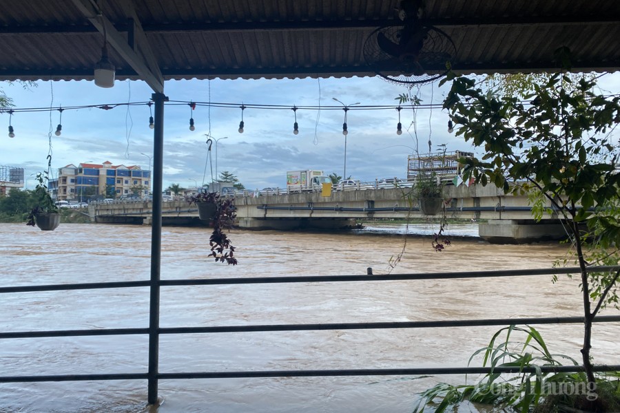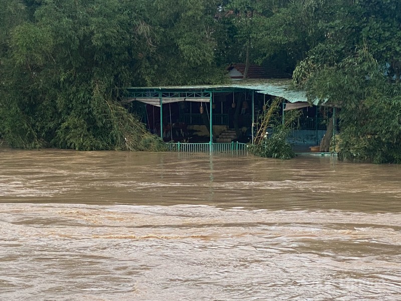 | Các hàng quán ven sông Vu Gia, cầu Ái Nghĩa (huyện Đại Lộc) bị ngập lụt |