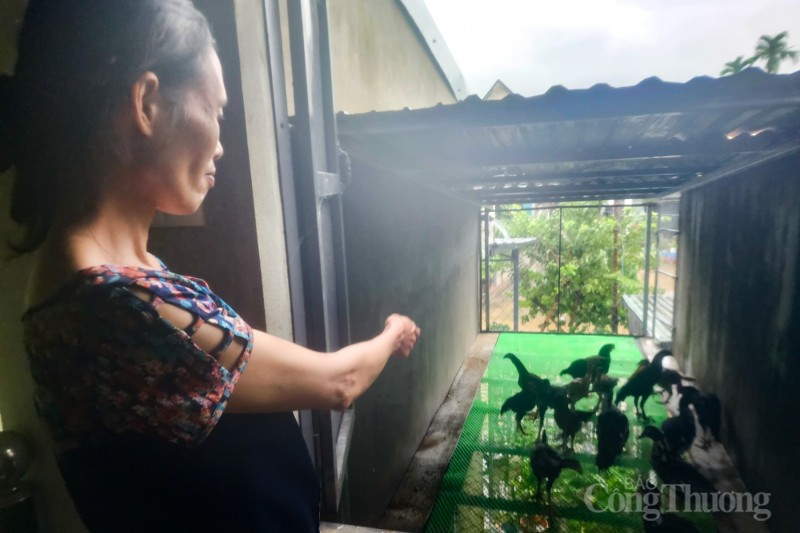 | Đàn gà của một gia đình được đưa lên cao để tránh lũ |