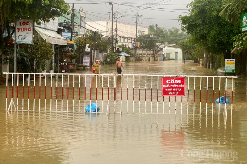 Ghi nhận của PV, chiều 14/11, một số tuyến đường ở huyện Đại Lộc (tỉnh Quảng Nam) như khu vực thị trấn Ái Nghĩa, các xã miền núi: Đại Lãnh, Đại Hồng, Đại Hưng... nước lên khá nhanh, gây ngập cục bộ từ 0,3m - 1m. |