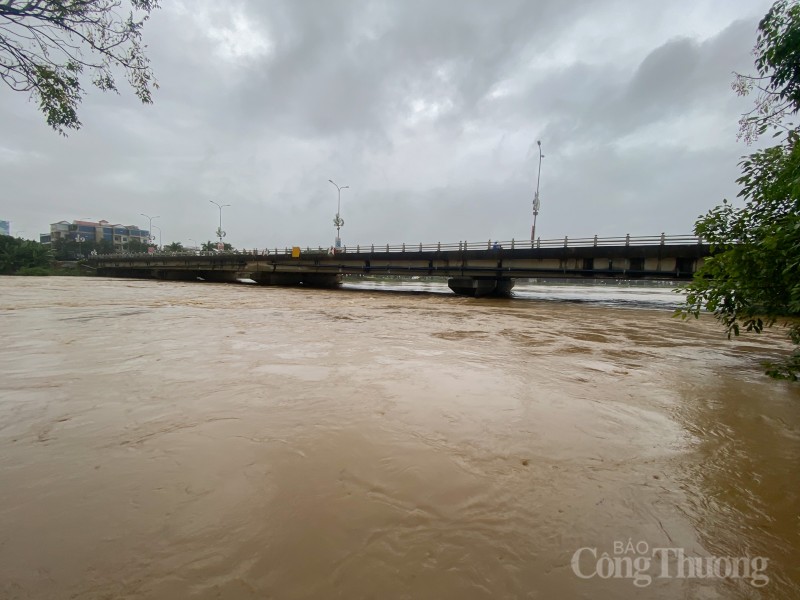 Nước sông Vu Gia đoạn chảy qua cầu Ái Nghĩa đang dâng cao |