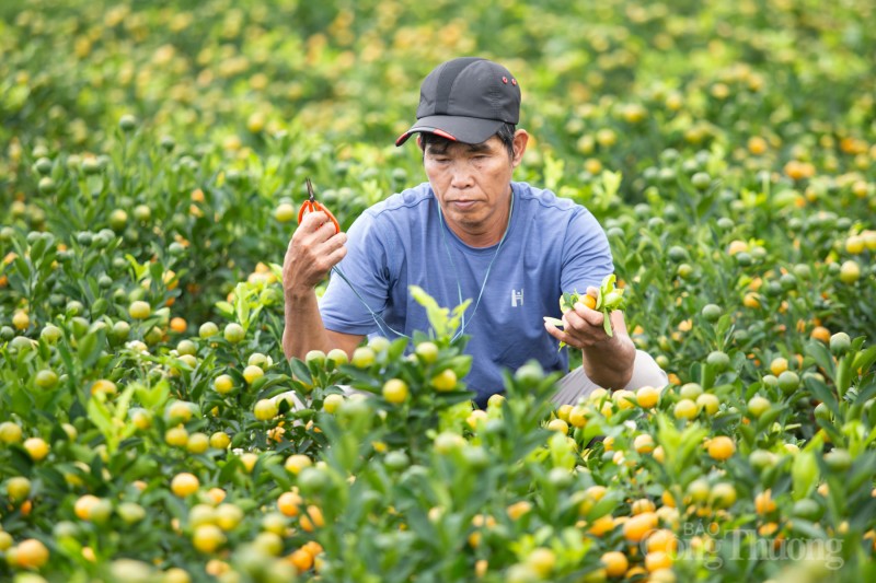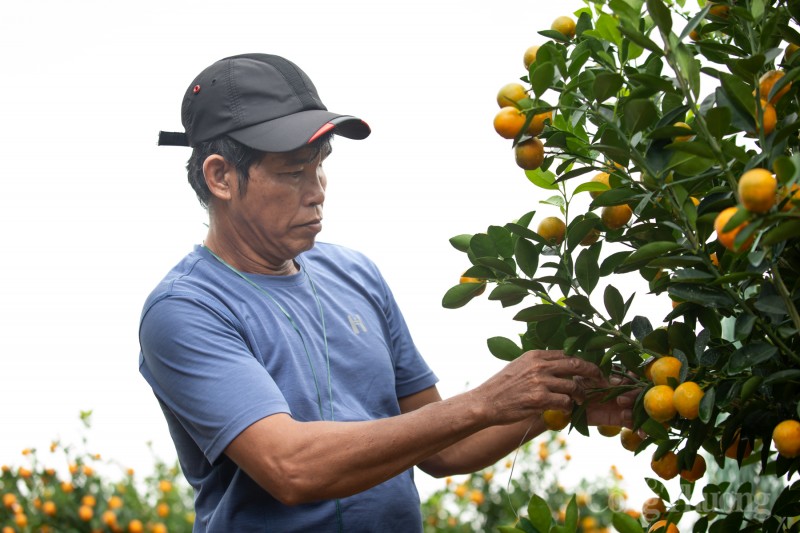 | Ông Nguyễn Phúc (53 tuổi, xã Cẩm Hà) chia sẻ, năm nay vườn ông trồng hơn 500 cây quất lớn và 3.000 cây quất mini, đến nay tất cả đã được bán hết. "Quất mini năm nay tôi bán với giá 90.000 đồng/cây, rẻ hơn so với năm ngoái một ít. Hiện quất đã được bán hết, giờ tôi chỉ chăm sóc, cắt tỉa và đợi thương lái đến lấy". |
