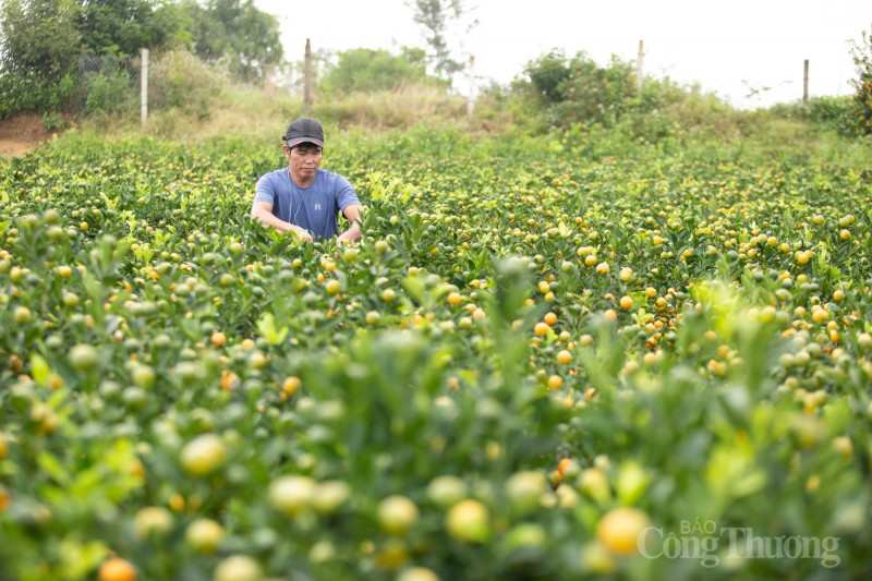 Còn hơn 1 tháng mới đến Tết Nguyên đán Giáp Thìn nhưng hầu hết vườn quất tại làng quất Cẩm Hà (TP. Hội An) đã được các thương lái đặt cọc để mua hết vườn.