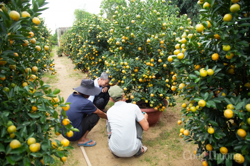 Theo các hộ trồng quất, tính đến thời điểm này, thương lái đã đặt cọc trên 90% số lượng quất cảnh của Hội An. |