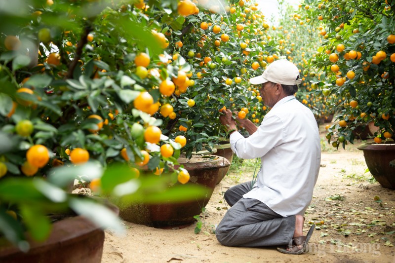 Là một trong những hộ có số lượng trồng quất cảnh nhiều, ông Nguyễn Bình (60 tuổi, thôn Bàu Ốc, xã Cẩm Hà, thành phố Hội An) cho biết năm nay ông trồng hơn 1.600 cây quất loại lớn và khoảng 9.000 quất loại nhỏ. Đến nay, thương lái đã đặt mua toàn bộ, ông chỉ giữ lại vài chục cây để bán lẻ. |