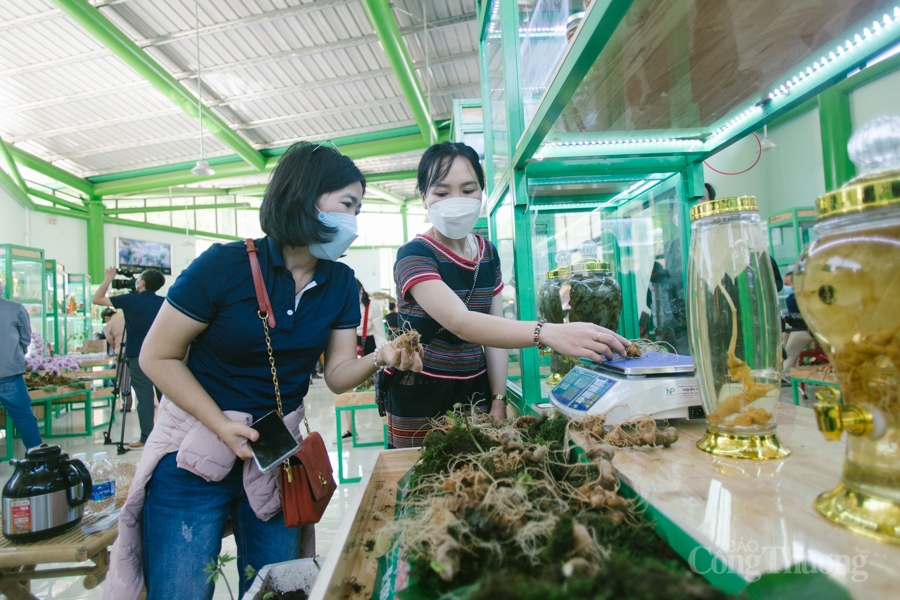 | Chị Nguyễn Thị Huỳnh – Giám đốc Công ty Huỳnh Sâm cho biết, phiên chợ sâm tổ chức thuận lợi cho việc mua bán, phục vụ khách du lịch. Đây là nơi cung cấp, buôn bán chuẩn 100% sâm Ngọc Linh, được kiểm định chất lượng trước khi đưa ra thị trường. |