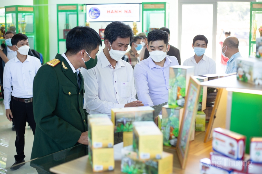 | Hơn 20 gian hàng trưng bày, giới thiệu các sản phẩm trên lĩnh vực nông - lâm nghiệp, tiểu thủ công nghiệp của tỉnh Quảng Nam gồm sâm Ngọc Linh, các loại cây dược liệu. |