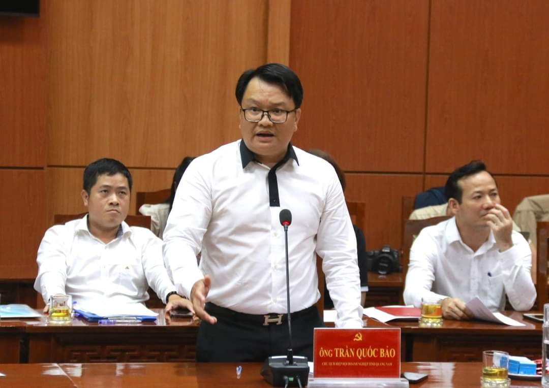 Tại buổi làm việc giữa Thường trực Tỉnh ủy Quảng Nam với Hiệp hội Doanh nghiệp tỉnh, Hiệp hội Du lịch Quảng Nam để nắm tình hình hoạt động của cộng đồng doanh nghiệp diễn ra vào chiều 5/3, ông Trần Quốc Bảo - Chủ tịch Hiệp hội Doanh nghiệp Quảng Nam kiến nghị đến Thường trực Tỉnh ủy những khó khăn của cộng đồng doanh nghiệp trên địa bàn.