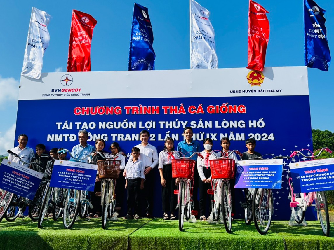 Tại sự kiện lần này, Công ty Thủy điện Sông Tranh và Công đoàn Điện lực Việt Nam đã trao tặng 40 chiếc xe đạp cho các em học sinh nghèo hiếu học trên địa bàn huyện Bắc Trà My.