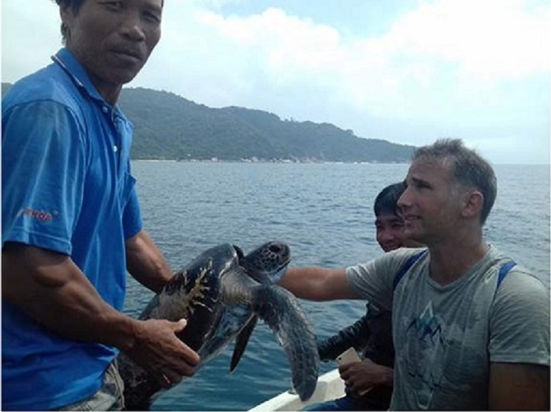 Mới đây, con rùa bị mắc lưới trên đã được Ban quản lý Khu bảo tồn biển Cù Lao Chàm cùng ông Sâm ‘phóng thích’ về đại dương.