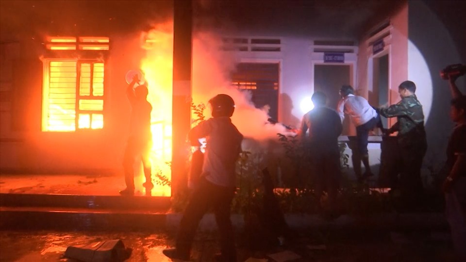 Theo đó, khoảng 22 giờ ngày 29/6, ngọn lửa bắt đầu bùng phát rồi nhanh chóng lan rộng ra toàn bộ dãy nhà làm việc. Lực lượng chức năng cùng người dân hỗ trợ dập lửa, đưa một số tài sản, giấy tờ, tài liệu ra ngoài đám cháy.