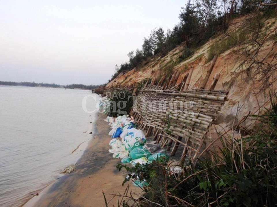 Chúng tôi đi dọc các thôn nằm ven sông và cửa biển như Tân Lập, Thuận An, Bình Trung… hầu hết đều bị sóng biển tàn phá, xâm thực tới hàng chục mét. Những tháng mùa mưa, nạn sạt lở càng diễn biến phức tạp, nặng nề hơn. Sóng biển ngoạm sâu vào 5-10m khiến nhiều diện tích rừng dương liễu lâu năm bị tàn phá, nhiều nhà dân đứng trước nguy cơ bị “nuốt chửng” khi chỉ còn cách mép biển chừng chục mét. Dù nhiều dự án kè cửa biển đã được triển khai; dự án kè chống sạt lở bờ biển cũng mới được tỉnh phê duyệt. Song nỗ lực ứng phó còn như “muối bỏ biển” trước nạn sạt lở nghiêm trọng.