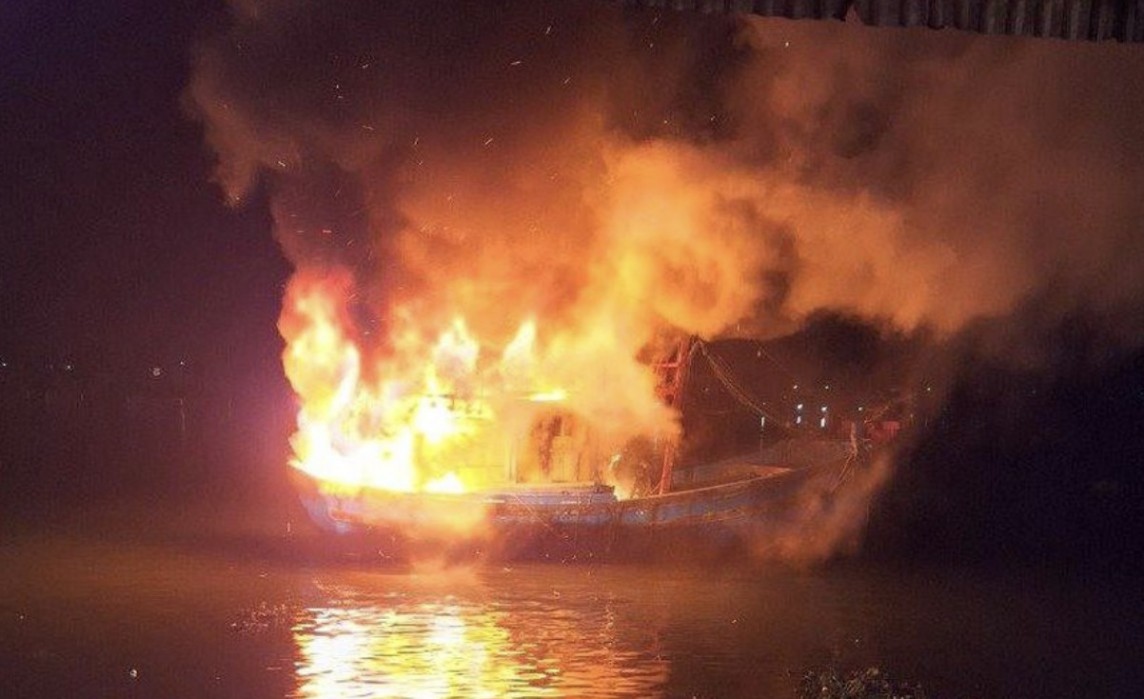 Quảng Ngãi: 2 tàu cá bốc cháy trong đêm