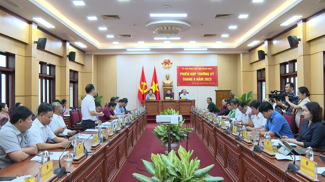 | Phiên họp thường kỳ UBND tỉnh Quảng Ngãi tháng 8/2023 (Ảnh: quangngai.gov) |