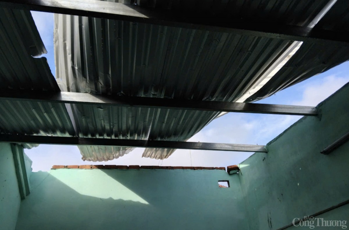 Cụ thể, nhà ông Nguyễn Ngọc Hùng và ông Phạm Điền bị tốc mái hoàn toàn, nhà ông Nguyễn Tàu bị tốc 100% mái hiên, nhà bà Nguyễn Thị Lý bị tốc mái tôn khu vực nhà bếp, nhà ông Nguyễn Tấn Công bị tốc mái tôn...