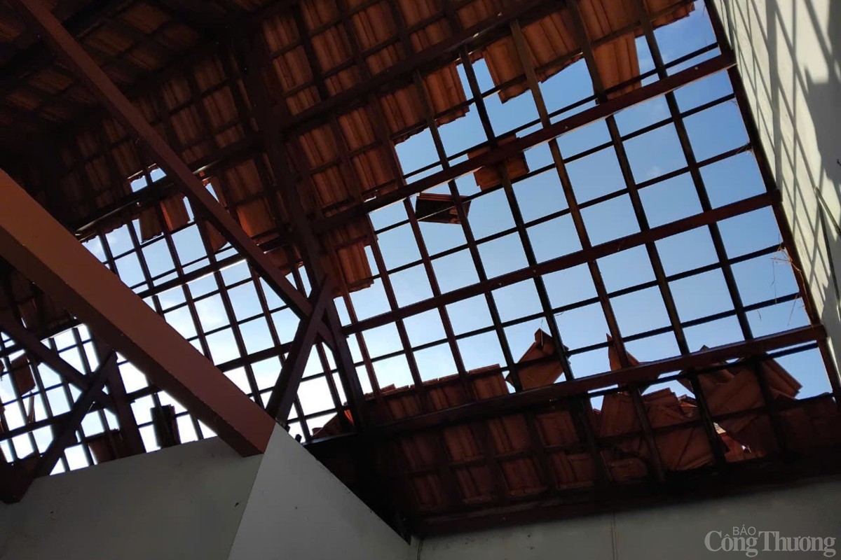 | Mái ngói của nhiều nhà dân đã bị lốc xoáy "lột" hoàn toàn |