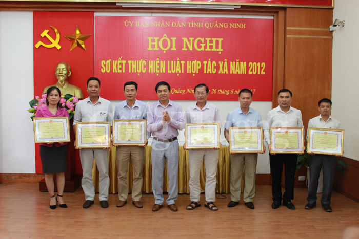 Nhân dịp này, UBND tỉnh Quảng Ninh cũng tặng Bằng khen cho 7 tập thể, 5 cá nhân có thành tích trong thực hiện Luật HTX năm 2012.