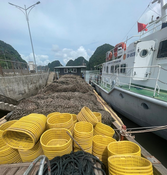 Kết quả khám phương tiện, lực lượng chức năng phát hiện 350.000 dây hàu với tổng khối lượng 63 tấn hàu giống do ông N.V. H (sinh năm 1969, địa chỉ Khu 9 phường Quảng Yên, thị xã Quảng Yên) là chủ.