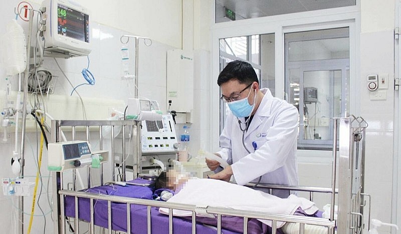 Theo đó, bệnh viện Sản Nhi Quảng Ninh đã tiếp nhận trường hợp bé gái Đ.T.N (2 tuổi, trú tại thị xã Quảng Yên (Quảng Ninh), nhập viện trong tình trạng suy hô hấp cấp, lơ mơ, môi chi tím tái, gồng cứng tay chân; SpO2 85% và tụt dần, ban xuất huyết dưới da rải rác đầu mặt.