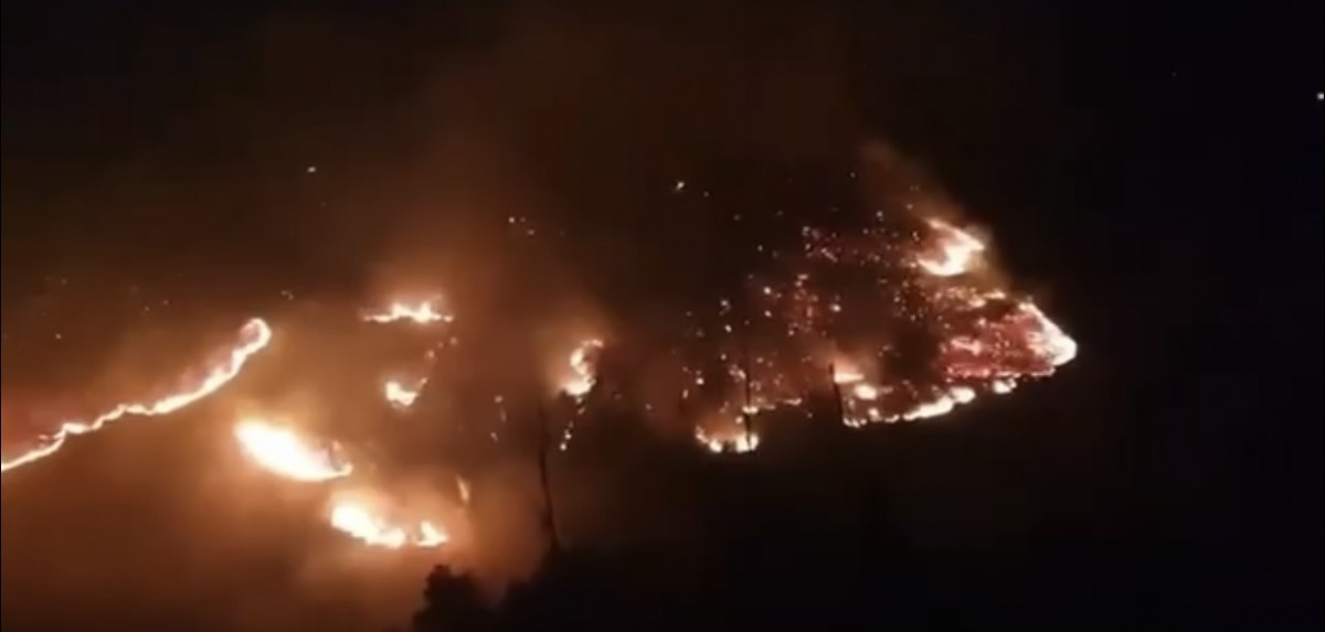 | Cháy rừng Khe Bốc, huyện Bình Liêu, tỉnh Quảng Ninh như ngọn "núi lửa" trong đêm 12/4. Ảnh: Người dân cung cấp |