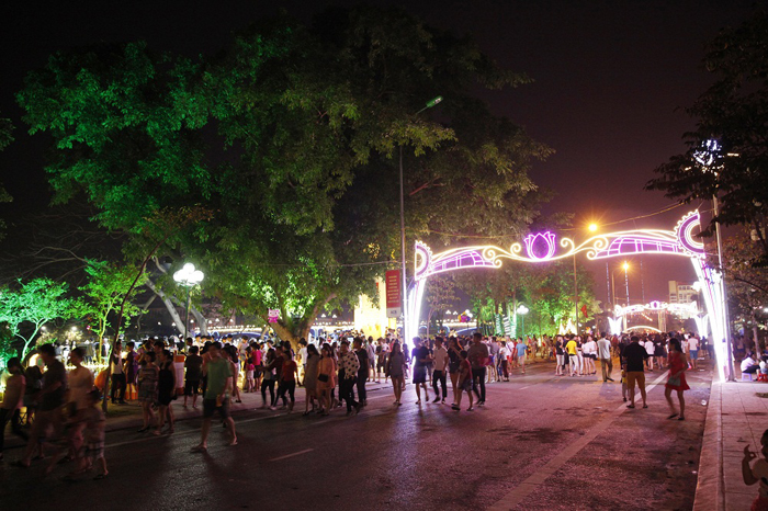 | Khách dạo chơi trên tuyến phố đi bộ phường Hòa Lạc - Móng Cái. Ảnh Internet |