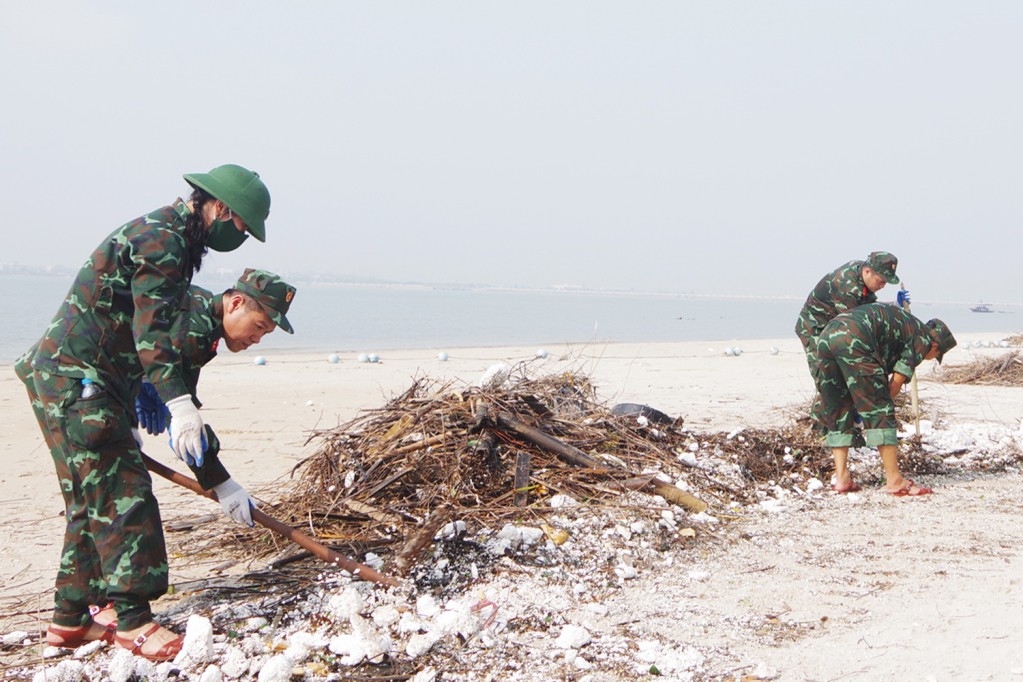 | Cán bộ, chiến sĩ Bộ CHQS tỉnh tích cực tham gia thực hiện đợt cao điểm ra quân làm sạch vịnh Hạ Long |