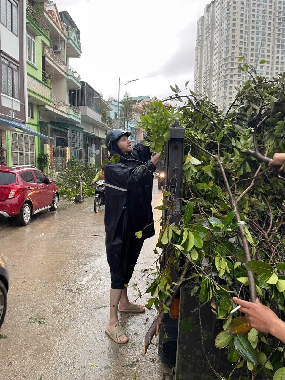 | Không chỉ người dân mà cả khách du lịch tại Quảng Ninh cũng chung tay cùng lực lượng chức năng dọn dẹp hậu quả do bão để lại |