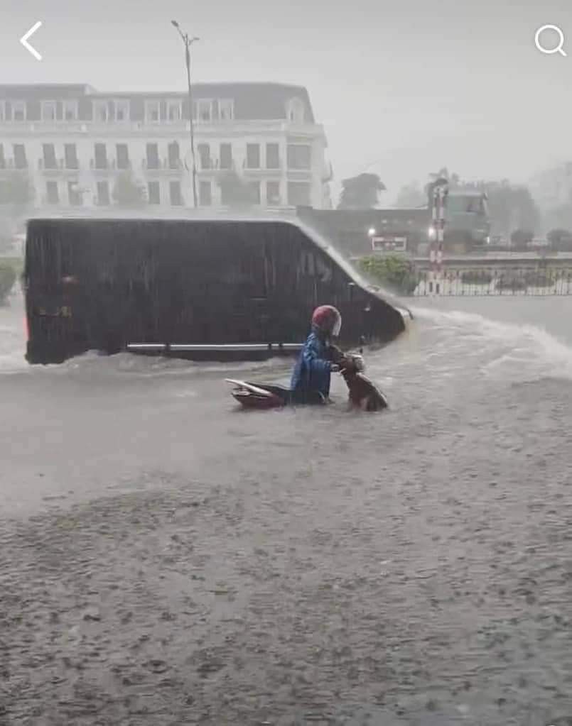 Mưa lớn đã khiến nhiều tuyến đường tại Quảng Ninh ngập sâu, các phương tiện chết máy.