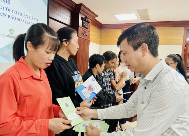 | Trao tặng bảo hiểm y tế cho người dân có hoàn cảnh khó khăn trên địa bàn TP. Hạ Long. Ảnh: Minh Đức |