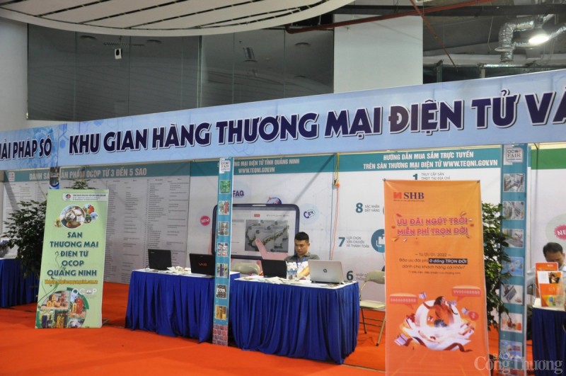 | Khu gian hàng thương mại điện tử và Ngân hàng số tại Hội chợ OCOP Quảng Ninh - Đông 2022 |