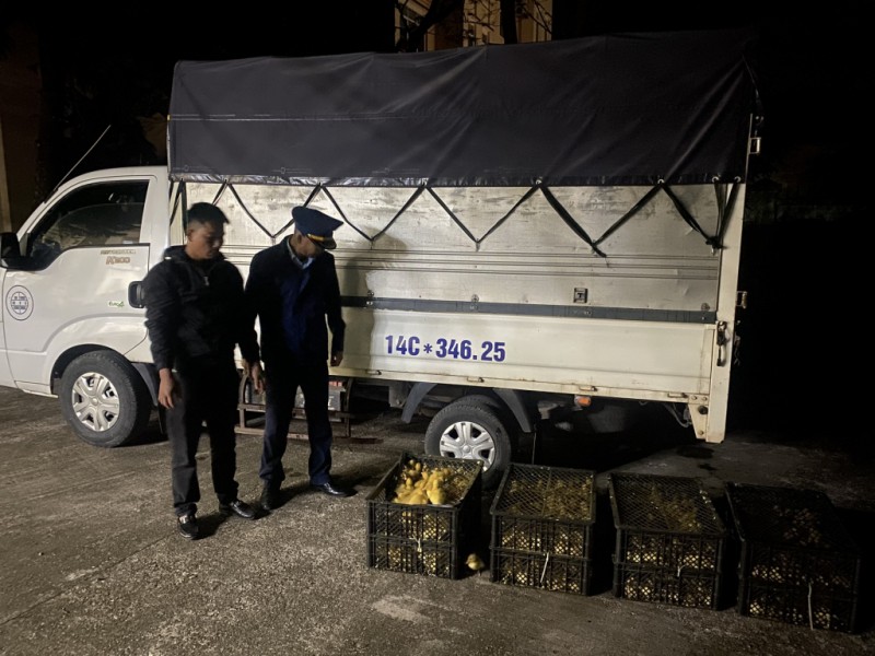 Cụ thể, chiều tối ngày 23/11, trong quá trình tuần tra kiểm soát, tại khu vực thôn Cầu Sắt (xã Vô Ngại, huyện Bình Liêu), Đội Quản lý thị trường số 8 đã phát hiện xe ô tô tải BKS 14C-346.25 vận chuyển 1.800 con vịt giống khoảng 5 ngày tuổi, số vịt trên có tình trạng yếu, trong đó có nhiều con đã chết.