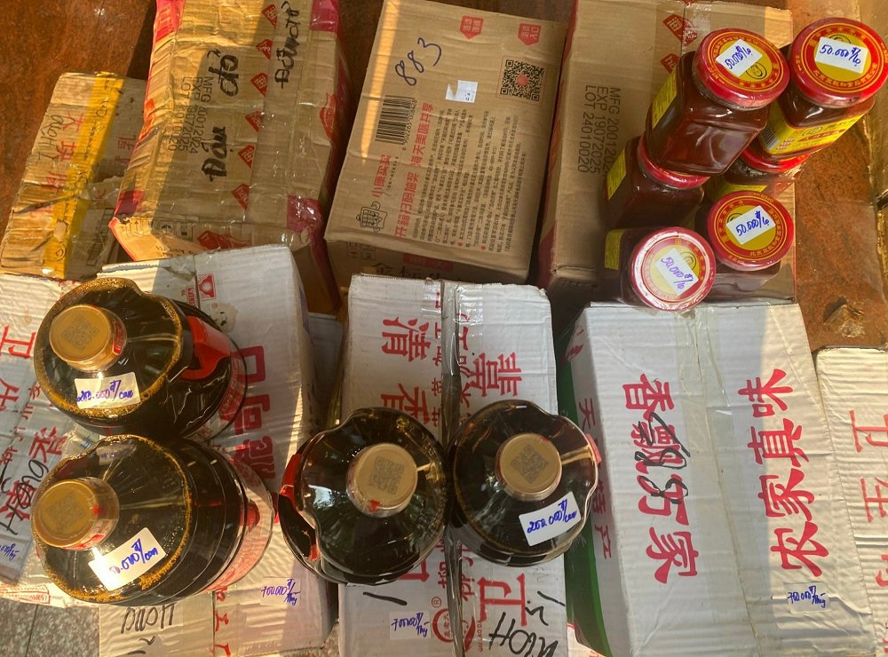 Tại thời điểm kiểm tra, lực lượng chức năng phát hiện 30 thùng củ cải muối (10 kg/thùng), 340 lọ đậu phụ thối (loại 340 gam/lọ) và 54 can xì dầu (loại 1,9 lít/can) xuất xứ Trung Quốc, nhập lậu có trị giá hơn 48 triệu đồng.