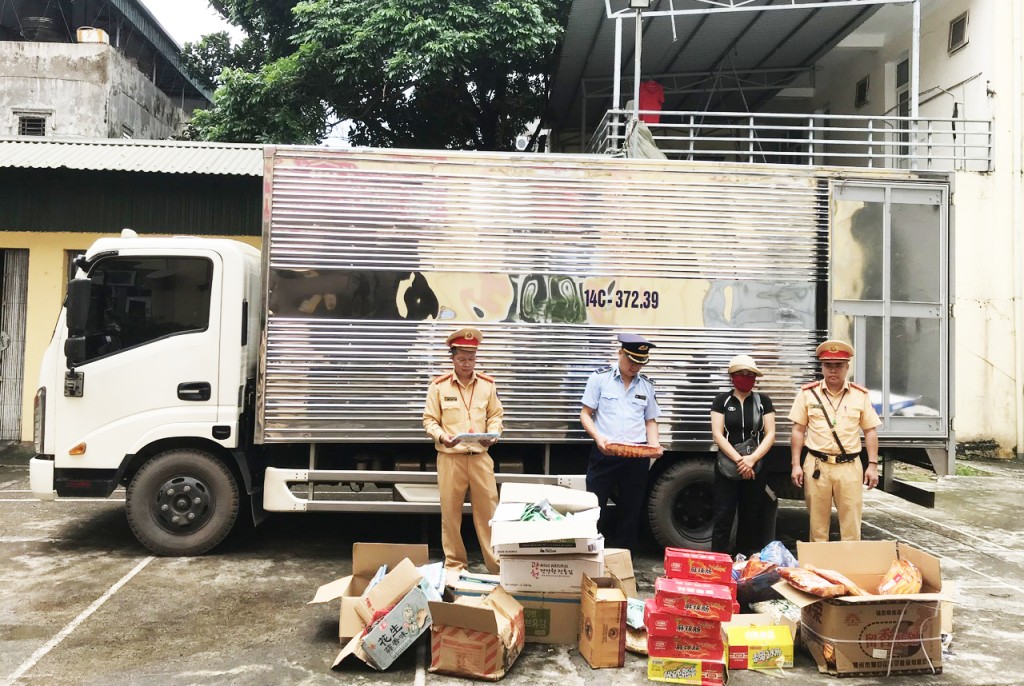 Qua quá trình kiểm tra, lực lượng chức năng phát hiện các sản phẩm thực phẩm, gồm: 300 gói Bim bim cánh gà; 1.100 chiếc xúc xích; 10 kg lạc củ; 24 chai nước sốt các loại; 182 gói rong biển ăn liền; 420 chiếc kẹo đồ chơi; 400 gói khoai lang sấy. Tất cả số hàng trên đều do nước ngoài sản xuất.