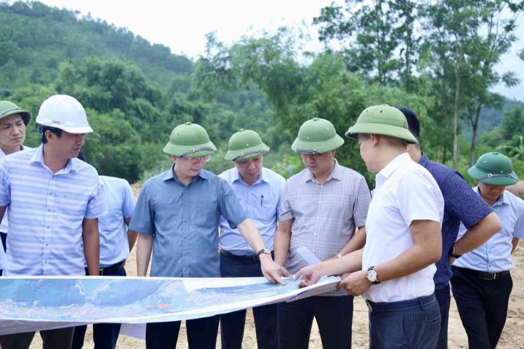 | Lãnh đạo TP. Hạ Long kiểm tra tiến độ thi công dự án Tuyến đường nối từ tỉnh lộ 342 đến quốc lộ 279, qua trung tâm xã Sơn Dương (Ảnh: Trung tâm tin tức Quảng Ninh). |