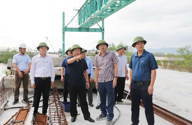| Chủ tịch UBND tỉnh Quảng Ninh Cao Tường Huy kiểm tra tiến độ thi công Đường ven sông kết nối cao tốc Hạ Long - Hải Phòng đến Đông Triều - Ảnh: Đức Hải |