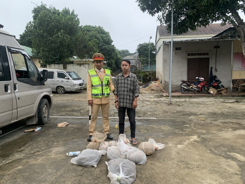 | Tài xế L. cùng tang vật - Ảnh: CA |