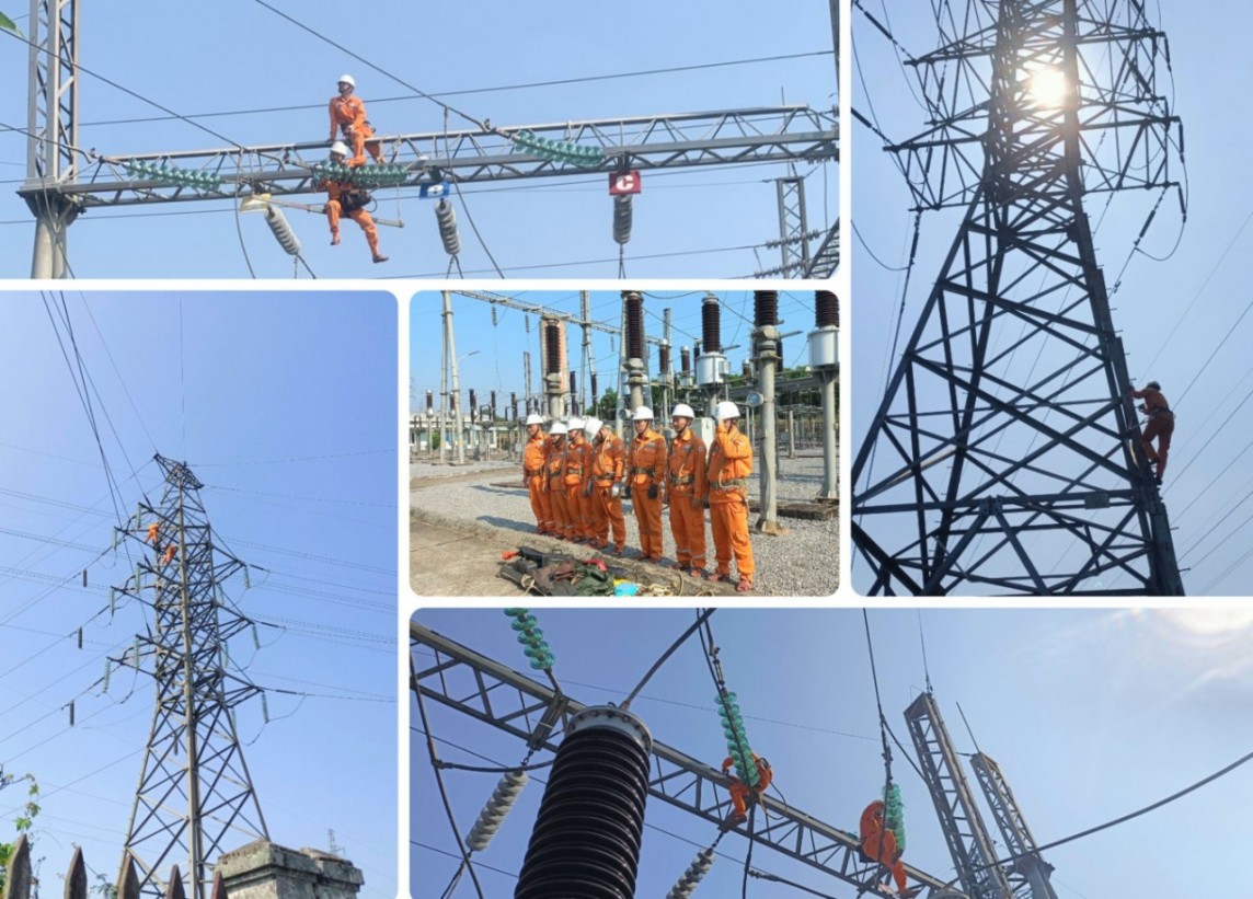 Để đảm bảo cung cấp điện trong mùa khô năm 2024, những người thợ điện phải căng mình, sửa chữa, bảo dưỡng các thiết bị trong trạm biến áp, trên lưới điện dưới cái nắng oi ả đến 360C - 390C (Ảnh: ĐQLVHLĐCT) |