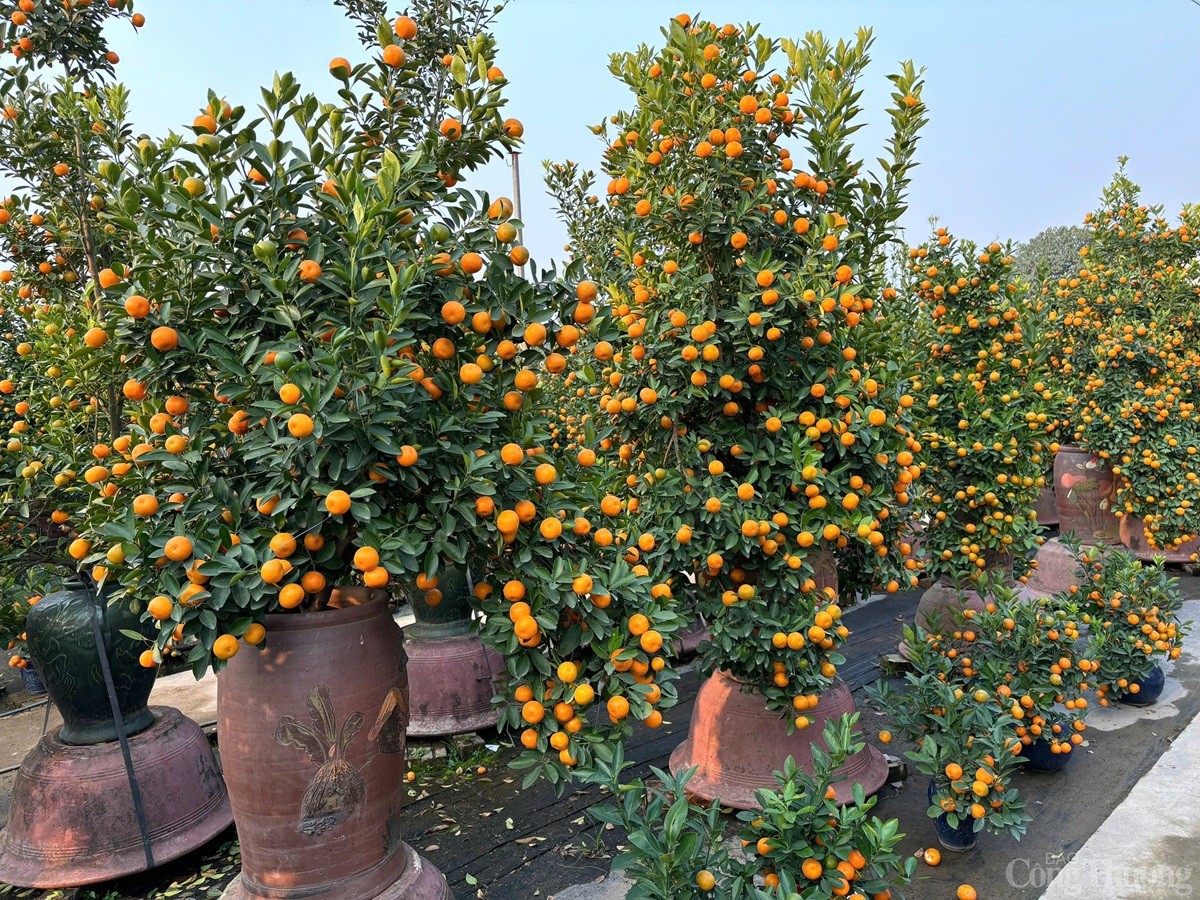 | Ngoài các chậu quất "khủng" kết hợp gỗ lũa, các nhà vườn tại Tứ Liên còn cho ra thị trường nhiều loại quất khác phục vụ nhu cầu đa dạng của người mua. |
