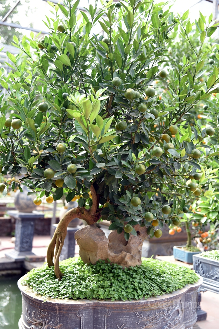 | Thế quất hạc lập, cây quất cổ thụ mà chủ vườn Hoàng Luận đã tạo dựng trên 30 năm |