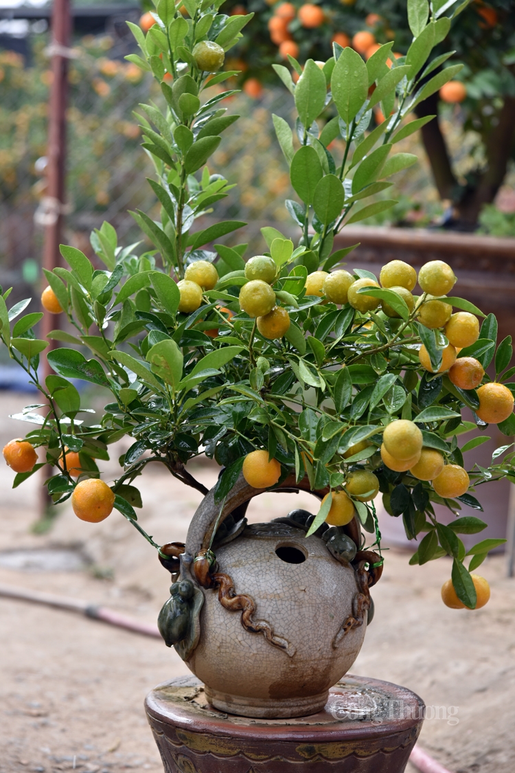 Chị Thu Trang nhà vườn Xuân Lộc chia sẻ: Việc chăm sóc ghép quất với gỗ lũa đòi hỏi sự tỉ mỉ, cầu kì hơn so với quất thông thường. Bởi mỗi cây có chế độ tưới nước bón phân, cắt tỉa, uốn nắn khác nhau đảm bảo cây phát triển tốt cùng với thân gỗ sao cho phù hợp tạo dáng thế như mong muốn. Nhiều khi giữa gỗ và quất phải có “duyên” thì mới kết hợp được với nhau, cho nên chủ vườn phải là người “mát tay”.