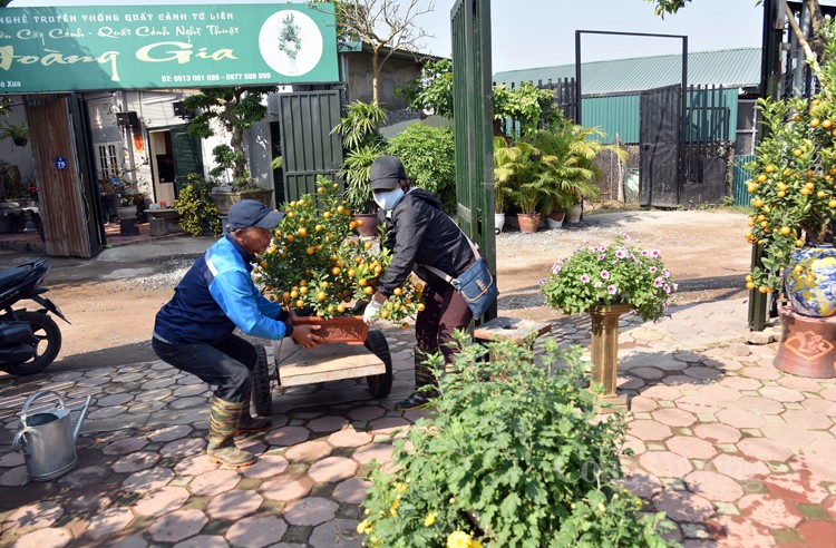 Chỉ còn hơn một tháng nữa là đến Tết Nguyên đán Quý Mão 2023, thời điểm này, nhiều nhà vườn tại làng quất Tứ Liên đang hối hả hoàn tất những khâu cuối cùng trong công đoạn chăm sóc. Ngoài tưới phun sương nhà vườn còn phải tỉa bỏ những quả nhỏ, sâu, xấu, tạo dáng cây cảnh để sẵn sàng bung hàng phục vụ nhu cầu người dân chơi Tết.