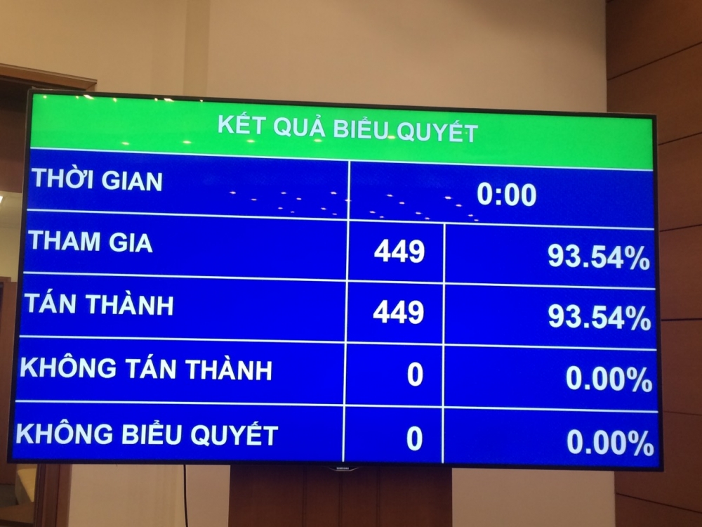 Sau kiểm phiếu, với 449/449 đại biểu tham gia biểu quyết tán thành, Quốc hội đã biểu quyết thông qua Nghị quyết phê chuẩn danh sách một số Phó Chủ tịch và Ủy viên Hội đồng Bầu cử Quốc gia.