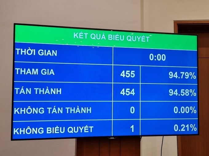 Tại hội trường, với 455 đại biểu Quốc hội tham gia có 454 đại biểu tán thành (94,58%), có 01 đại biểu Quốc hội không biểu quyết (0,21%), Quốc hội đã thông qua Luật Phòng, chống ma tuý sửa đổi.