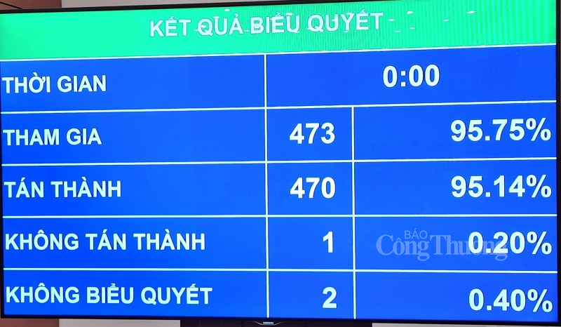 Kết quả cho thấy, có 470 đại biểu tham gia biểu quyết tán thành, (chiếm tỷ lệ 95,14%). Như vậy, với đa số đại biểu tham gia biểu quyết tán thành, Quốc hội đã chính thức thông qua Nghị quyết về việc lấy phiếu tín nhiệm, bỏ phiếu tín nhiệm đối với người giữ chức vụ do Quốc hội, Hội đồng nhân dân bầu hoặc phê chuẩn (sửa đổi).