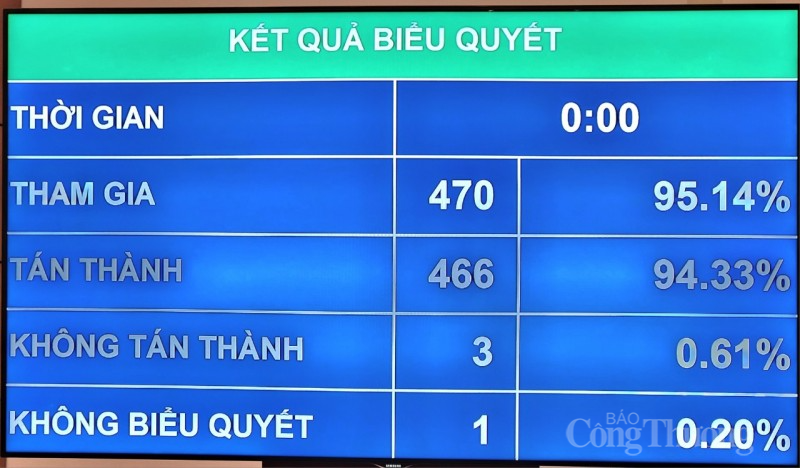 | Quốc hội biểu quyết thông qua với tỷ lệ tán thành đạt 94,33% (Ảnh: Thu Hường) |