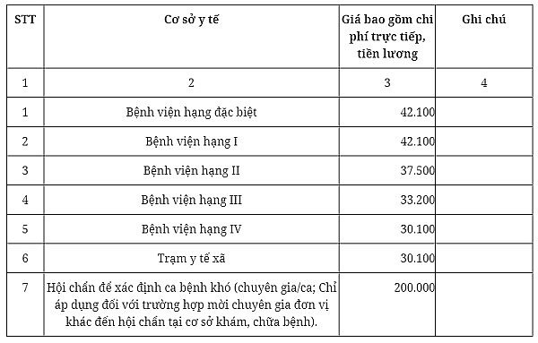 Theo đó, giá dịch vụ khám bệnh, chữa bệnh BHYT, gồm: Giá dịch vụ khám bệnh, hội chẩn; giá dịch vụ ngày giường bệnh; giá dịch vụ kỹ thuật, xét nghiệm; bổ sung ghi chú của một số dịch vụ kỹ thuật.