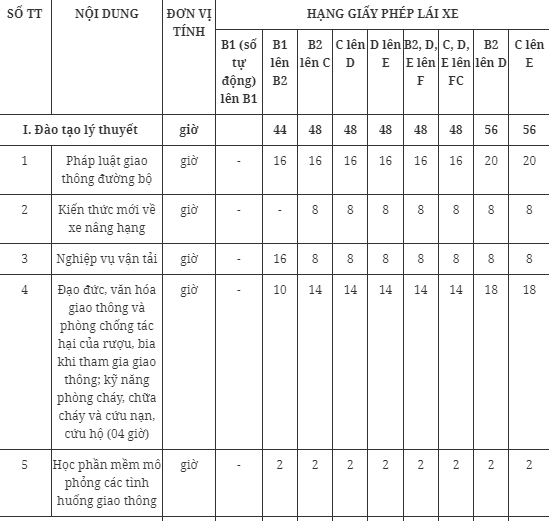 Kiểm tra khi kết thúc môn học lý thuyết theo bộ câu hỏi sát hạch lý thuyết (nội dung bộ câu hỏi gồm các môn học: Pháp luật giao thông đường bộ; cấu tạo và sửa chữa thông thường; nghiệp vụ vận tải; đạo đức, văn hoá giao thông, phòng chống tác hại của rượu bia và phòng chống cháy nổ, cứu nạn và cứu hộ khi tham gia giao thông) và mô phỏng các tình huống giao thông;